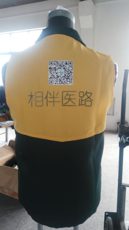 马甲工作服定做的款式一般不会太复杂。广告马甲要凸显的是标准和广告语。因此马甲的款式不能喧宾夺主。以上是马甲做好之后的实物。左前胸是加上其公司的名称和LOGO。后背是名称加公众号二维码。款式上并没有针对哪一次活动而定的slogan。因此这批马甲的性价比相对来说更好一些。